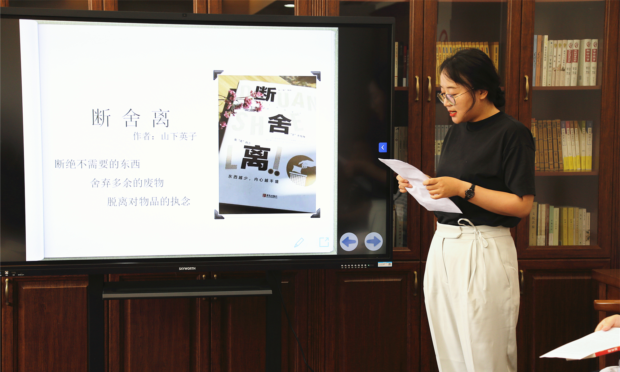 今天的读书会,从教我们敞开心扉与他人沟通解决心灵困境,到学习“断舍离”回归简单清爽的生活,再到新手妈妈对幼儿的心灵抚养,以及世界名着等,让我在别人的故事里思考了自己人生,在别人的境遇里解答了自己的困境,在别人的感知中寻找到对这世界的共鸣。感谢你们带来的精神盛宴!(刘攀)