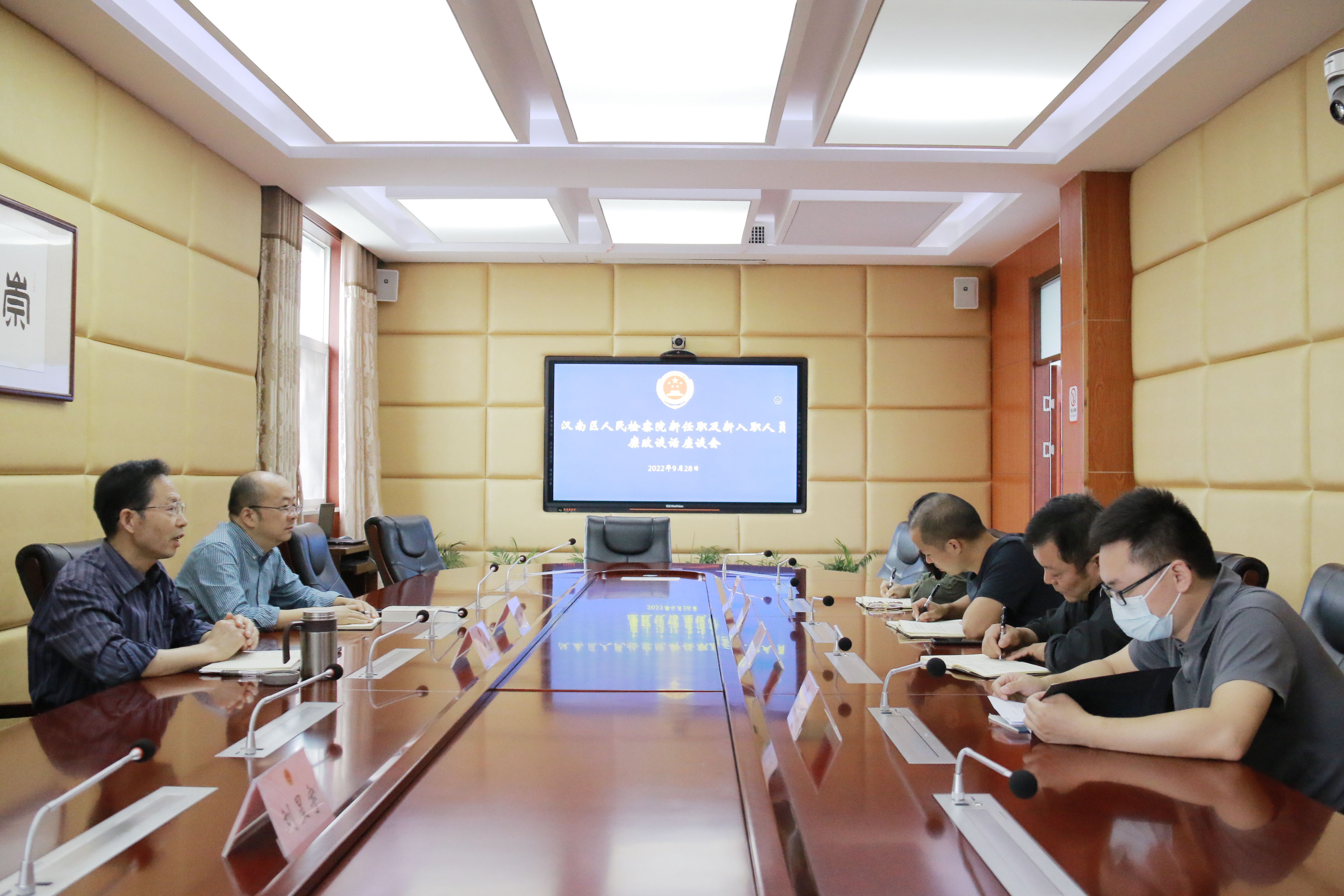 随后,肖检代表院党组对新晋职人员和新进人员表示祝贺与欢迎,希望大家时刻自重自省自警自励,做到慎独慎初慎微慎友,绷紧廉政弦,焕发新气象,展现新作为。同时,他结合检察工作实际提出了三点要求: