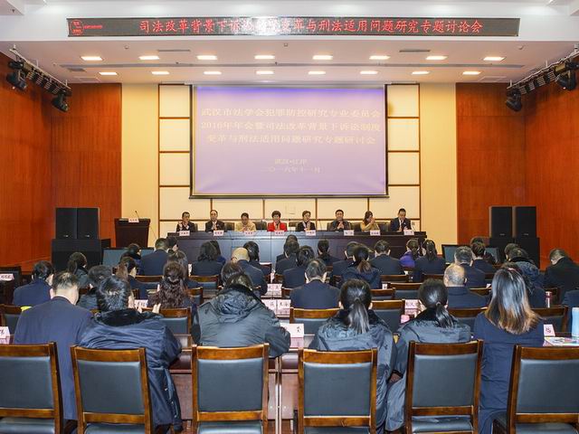 11月9日,武汉市法学会刑事法学研究会犯罪防控研究专业委员会 2016年年会暨“司法改革背景下诉讼制度变革与刑法适用问题研究”专题研讨会在江岸区人民检察院顺利召开。中国刑法研究会副会长、武汉大学法学院教授、博士生导师、武汉市法学会副会长莫洪宪,武汉市人大常委会代表工作委员会主任、武汉市法学会党组书记、副会长孙原琍,武汉市法学会副会长周玉,湖北省人民检察院研究室副主任阮志勇,武汉市人民检察院研究室主任刘国媛,武汉市江岸区委政法委副书记何朝晖等领导和嘉宾出席了会议,汉阳、青山、东西湖区检察院和江岸区法院、江岸公安分局的论文作者以及江岸区检察院全体干警共100余人参加会议。