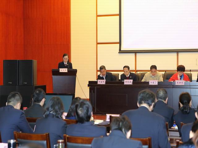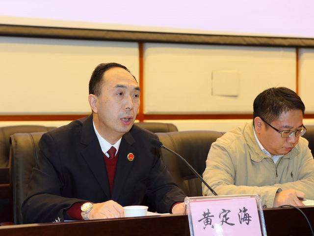 黄定海检察长表示,我院将认真贯彻党的十八大、十八届三中、四中、五中、六中全会及司法体制改革的新要求、新部署,更紧密结合当前检察工作,加强检察理论建设,充分发挥法律监督职能,不断开创检察工作新局面。(摄影:李强平)