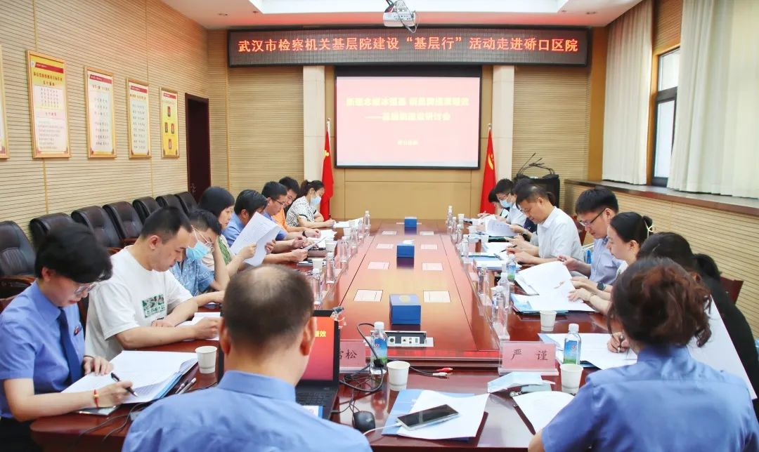 本网讯(通讯员 钟颖)7月14日下午,武汉市检察机关新时代基层院建设“基层行”活动走进硚口区检察院。硚口区检察院党组书记、检察长刘星,武汉市检察院政治部综合部主任涂小平,武汉市检察院团委书记、青工委秘书长刘钊,硚口区检察院党组成员、副检察长刘明,相关基层院政治部主任及工作人员参加。