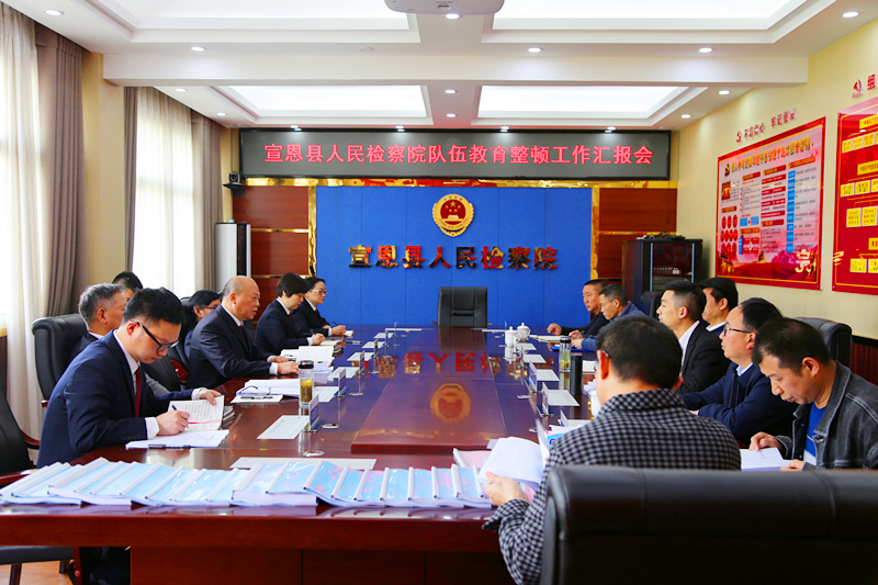 在随后召开的汇报会上,宣恩县检察院党组书记、检察长肖功平从队伍教育整顿学习教育环节工作开展、查纠整改环节工作开展等方面对宣恩县检察院队伍教育整顿情况进行了汇报。