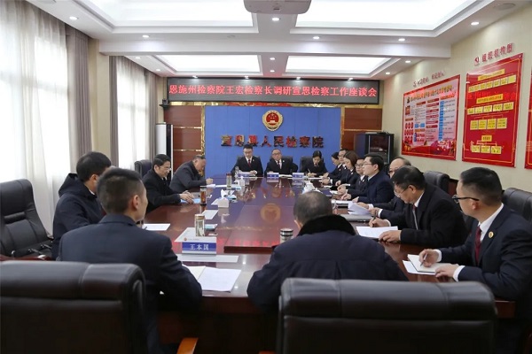 王宏对宣恩检察工作取得的成效给予充分肯定,肯定了宣恩检察院质效工作抓得实、队伍精神面貌好和机关管理规范,并就如何学习贯彻落实党的十九届六中全会精神、州第八次党代会精神和推动自身高质量发展以更好服务经济社会高质量发展提出要求: