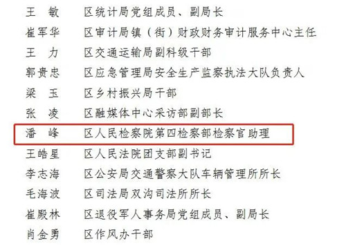 第四检察部检察官助理潘峰获评